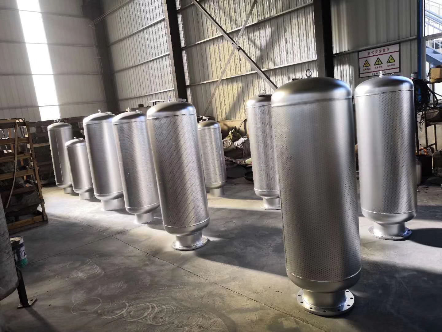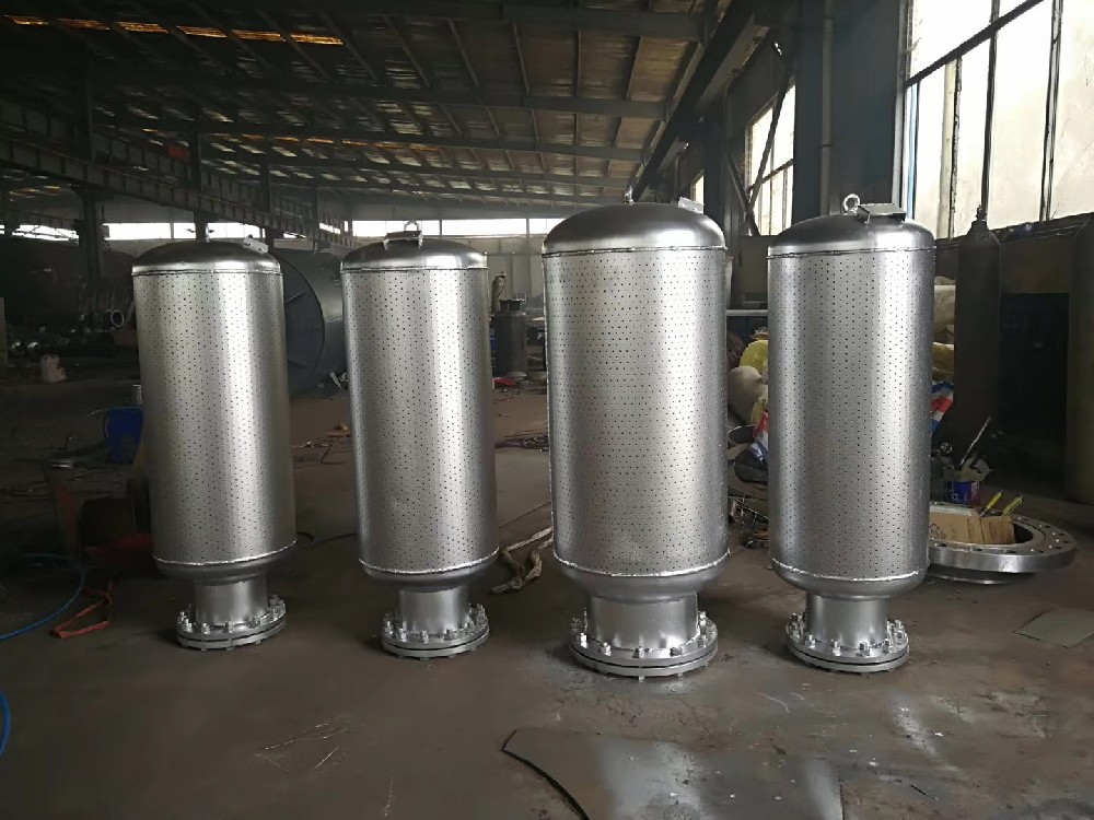 一、氧氣消聲器結構型式 氧氣消聲器是一種節流降壓,耐熱吸聲組合式消聲器,內部結構采用了吸音抗燃性材料和防腐蝕的不銹鋼制造。(選連云港博大機械設備制造有限公司專業制造...